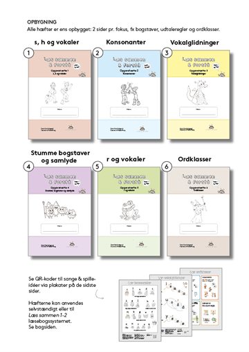 med lydrette ord til mestring af de vigtigste udtaleregler. Kopimappen består af seks hæfter, der kan bruges selvstændigt eller som supplement til læsebogssystemet Læs sammen 1-2 fra Dansk Psykologisk Forlag.
